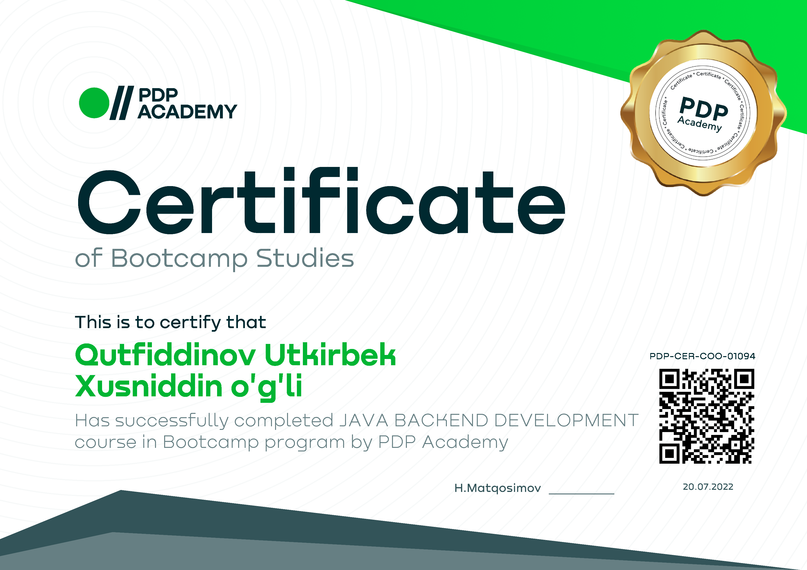 | PDP academy certificate | July, 2022 | "PDP academy" LLC | PDP-CER-COO-01094 | Click |